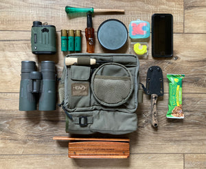 The Turkey pro II is perfect for run and gun style hunting. The improved pot call pocket provides plenty of space even for larger calls such as the Woodhaven cherry crystal. Plenty of space to hold all your necessary gear but also light and low profile for those long hikes or brush crawling moments. The only flaw would be the noise the zippers create, if that was more quiet it would be perfect!
